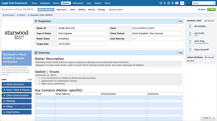 One collaboration tool for case management, client extranets, deal rooms, practice management, and knowledge sharing.